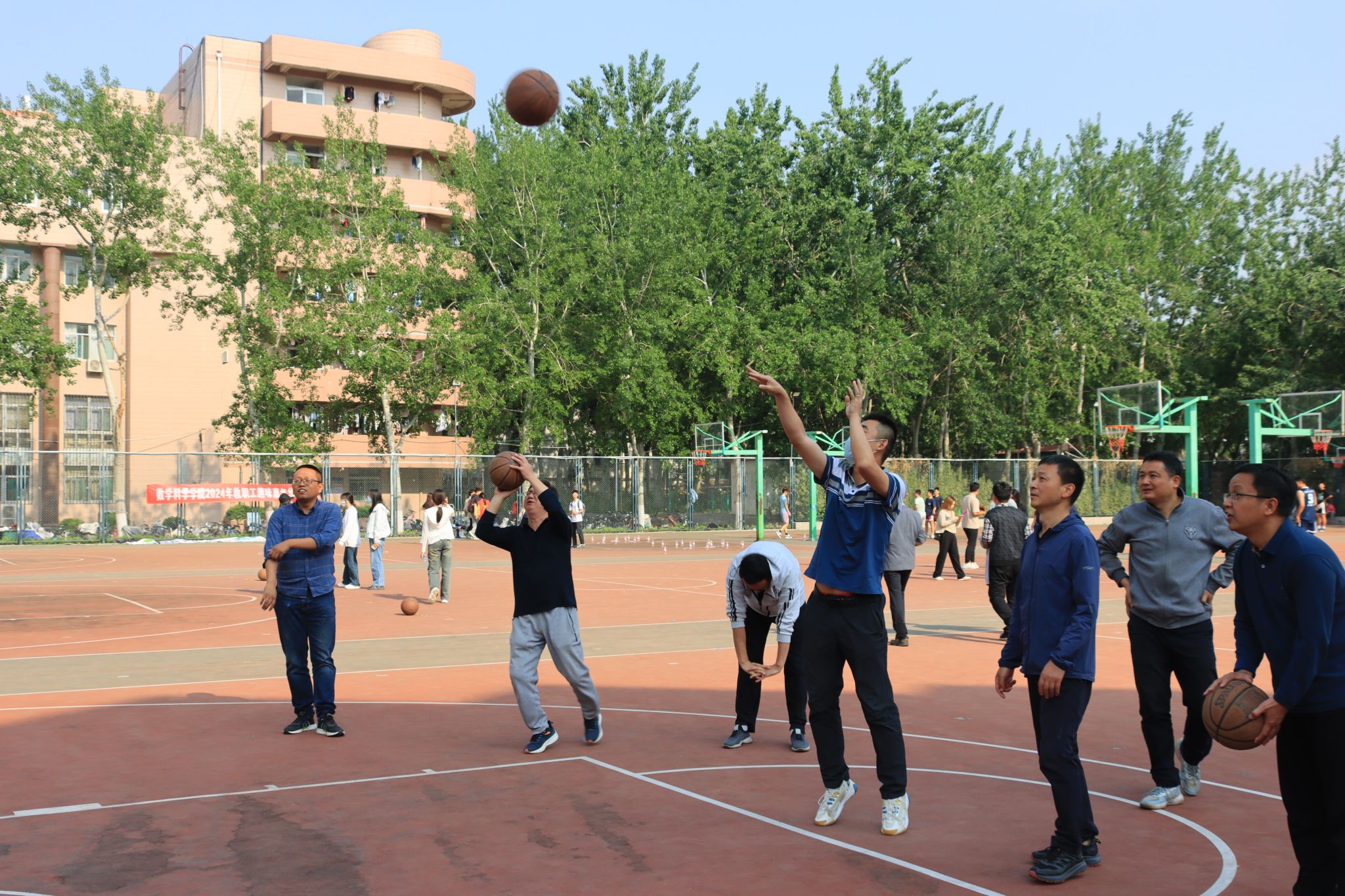 比赛项目丰富多样,既有沙包投准、一分钟跳绳、定点投篮和套圈等个人项目的角逐,也有三人四组和运篮球接力跑的团体项目的较量。在激烈角逐的个人项目中,教职工们用自己的汗水和努力,展现了他们卓越的风采和实力;在团队项目中,教职工们更是以默契配合和团队协作将比赛推向高潮。在此次运动会中,教职工们不仅展现了出色的体育竞技水平,更彰显了积极向上的精神风貌和团结协作的团队精神。他们相互鼓励、相互支持,共同为团队荣誉而奋斗。