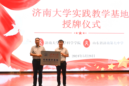 在济南第七中学报告厅举行了实践教学基地揭牌仪式。济南第七中学校长刘汉路、办公室主任李静、数学组教研组长程凤霞、澳门赌场