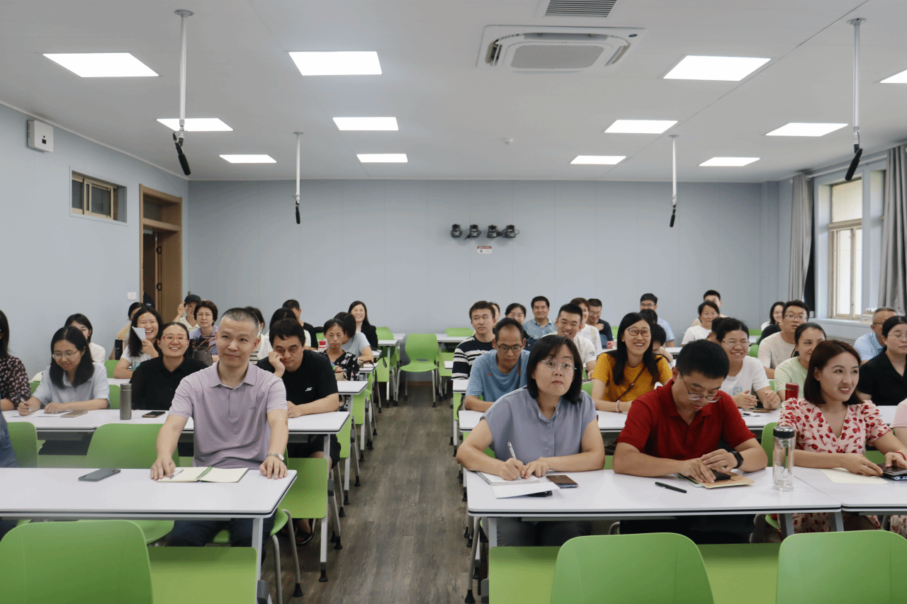教师展开交流,并强调教师在新范式中的角色转变的重要性,鼓励教师积极以智助教,成为学生学习道路上的引导者和好伙伴。