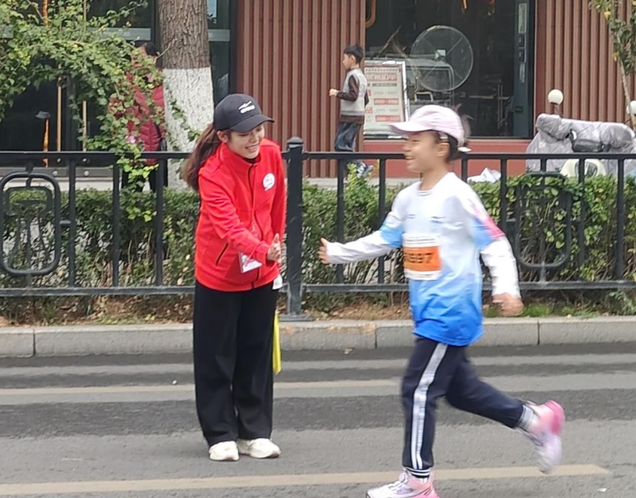 在赛前对志愿者们进行了专业且全面的培训,包括赛事流程、急救知识、沟通技巧等,确保他们能够以最佳状态投入到赛事服务中。马拉松开跑当天,志愿者们提早4个小时出发,到达赛道的各关键点,严阵以待,为马拉松开跑时刻准备着。7时30分准时鸣枪开跑后,他们活跃在赛道的各个关键点,为参赛者提供路线指引、水分补给、情绪鼓励等服务,确保每一位跑者都能享受到最贴心的赛事体验。在比赛过程中,志愿者们不仅提供了专业的服务,更展现出了数院学子的风采。他们统一着装,面带微笑,以饱满的热情迎接每一位跑者,成为了赛道上一道亮丽的风景线。