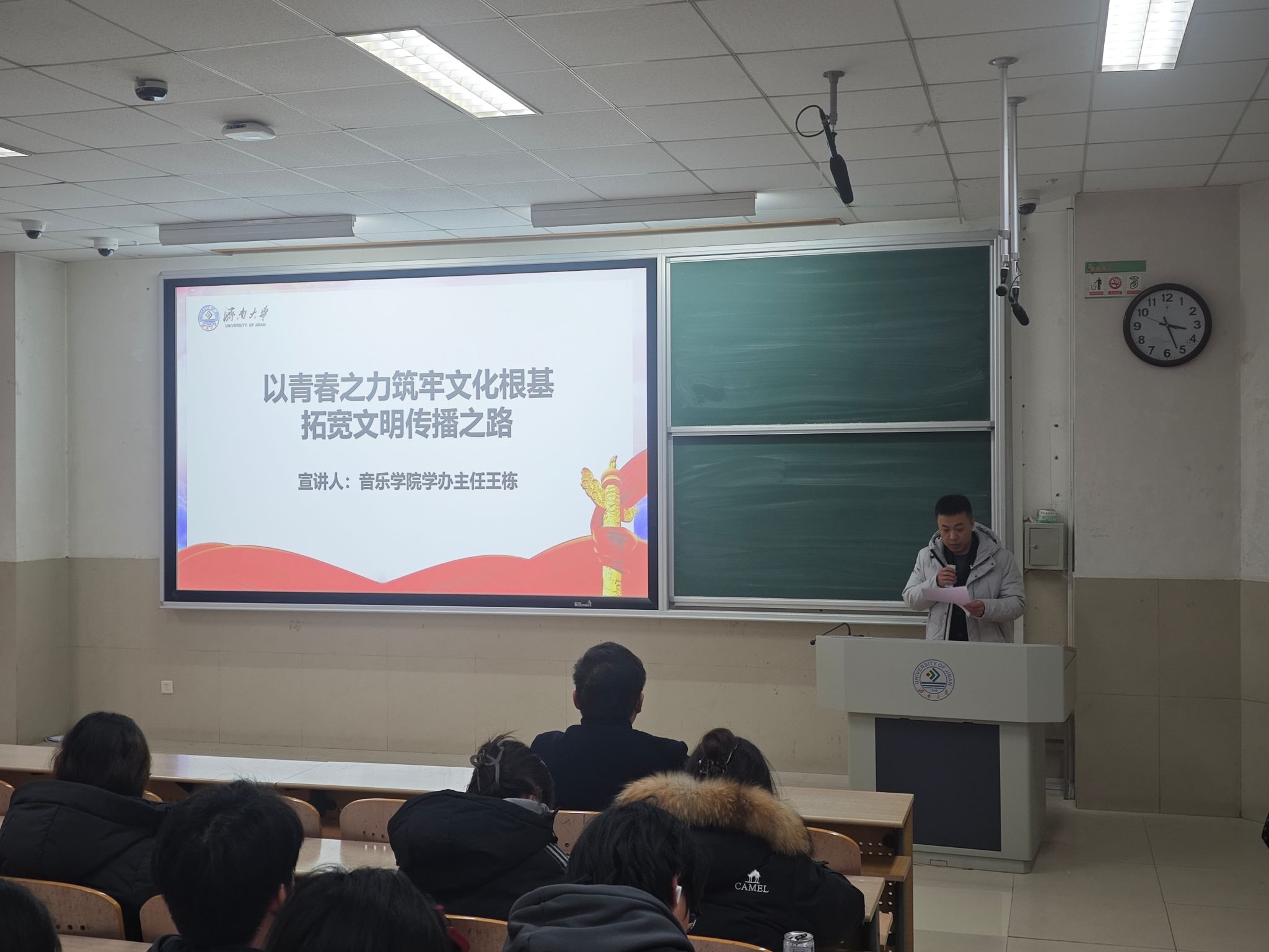 学办主任王栋以“以青春之力筑牢文化根基拓宽文明传播之路”为题,从文化传承与创新角度,阐述青年在守护中华优秀传统文化、推动文明交流互鉴中的责任;材料澳门赌场