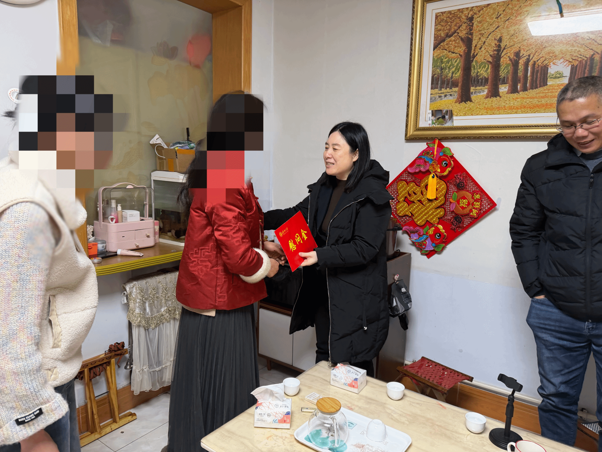 家访团队一进门便送上精心准备的慰问金、慰问礼品及新春祝福,与学生及其父母促膝长谈。崔英静详细询问了学生母亲的病情恢复情况、家庭经济来源等基本情况,对家庭面临的赡养压力和生活困难深表关切。向家长详细介绍了国家和学校的奖助勤贷政策,明确表示澳门赌场