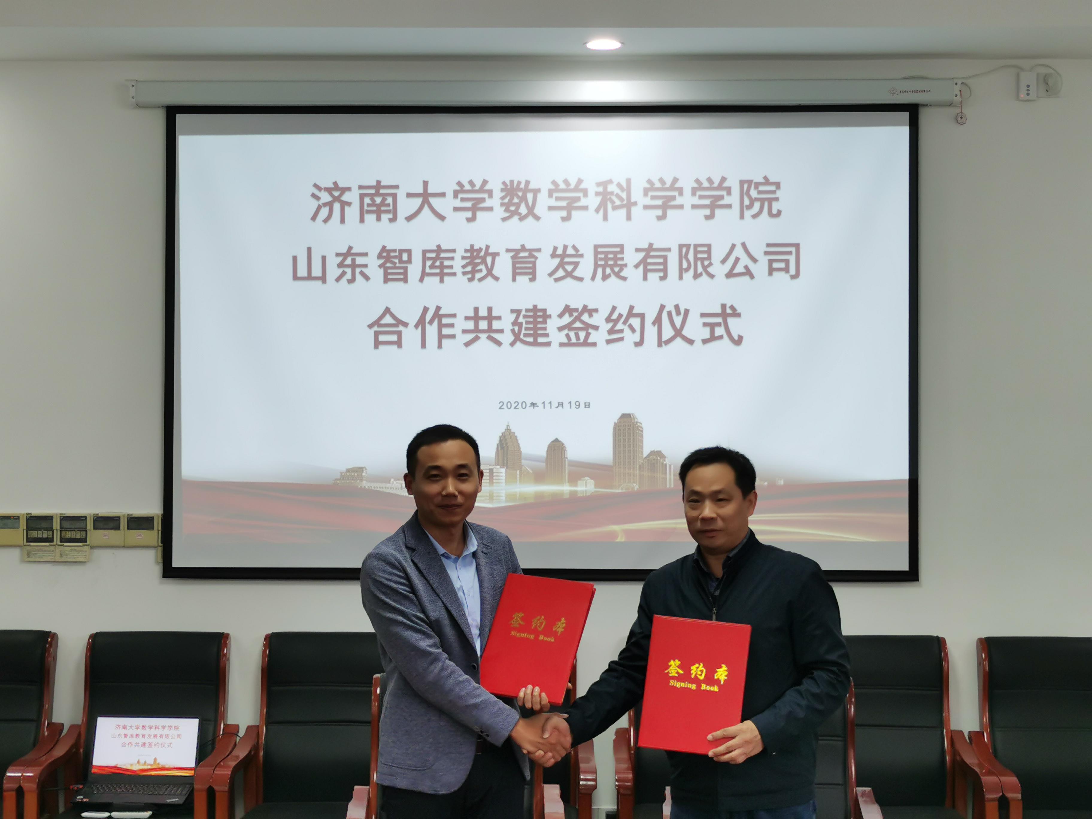 副院长王纪辉、山东智库教育发展有限公司副总经理张士超代表双方签署了校地合作共建协议书。