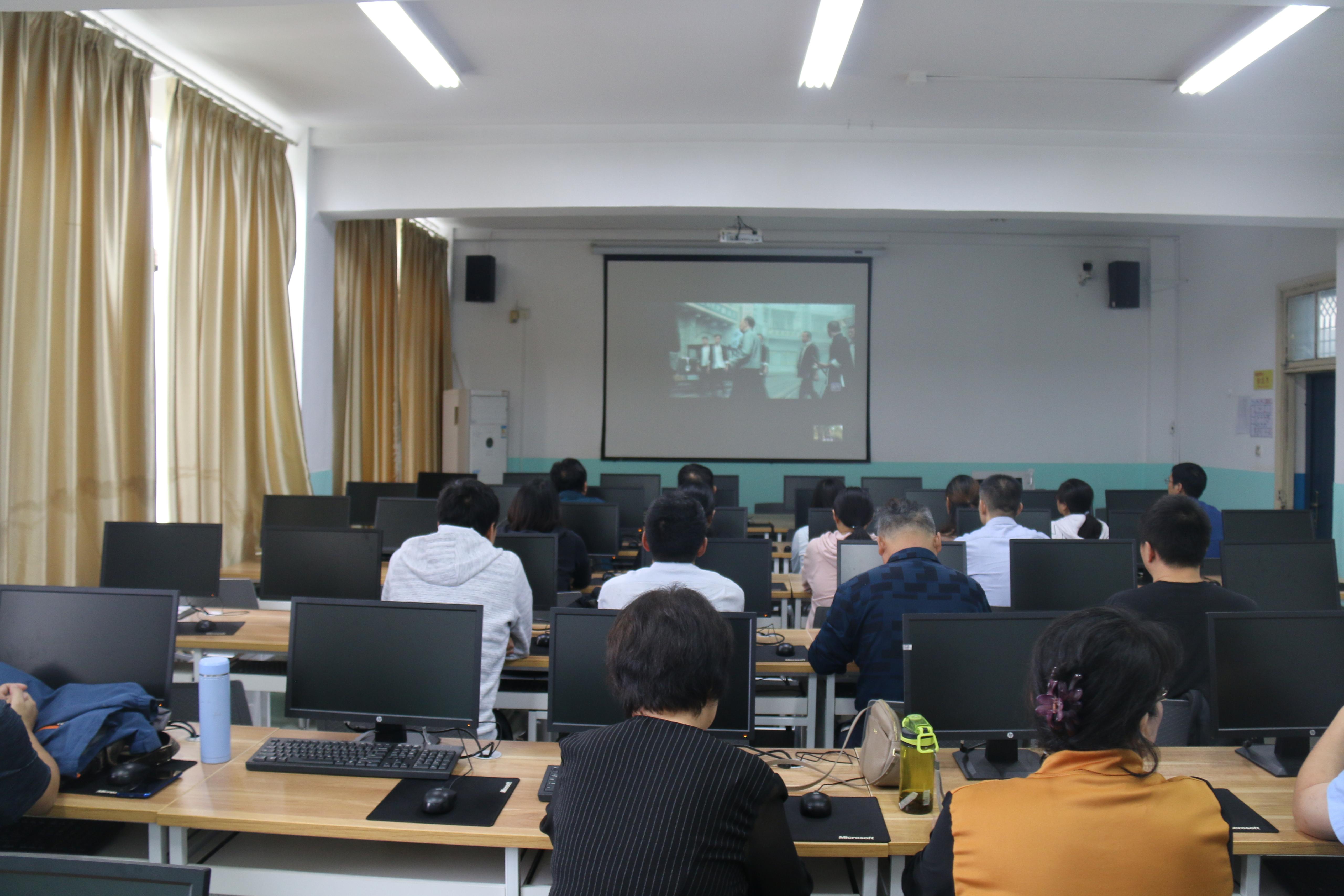 6楼机房、梅花馆等教室,分别以支部为单位组织全体师生党员观看了红色电影《1921》。