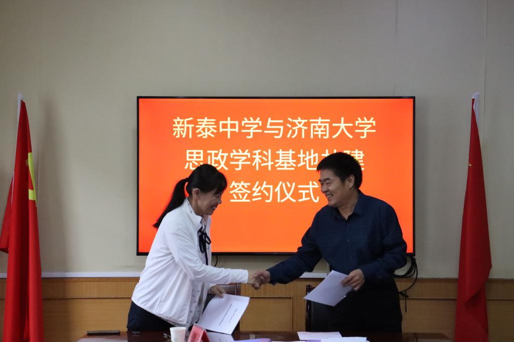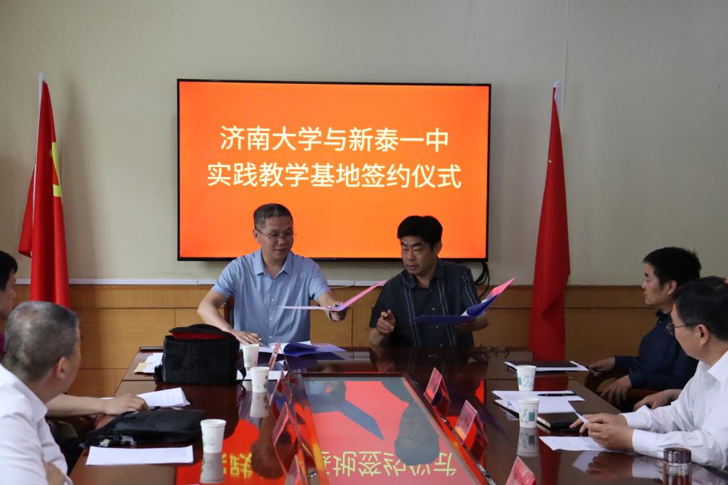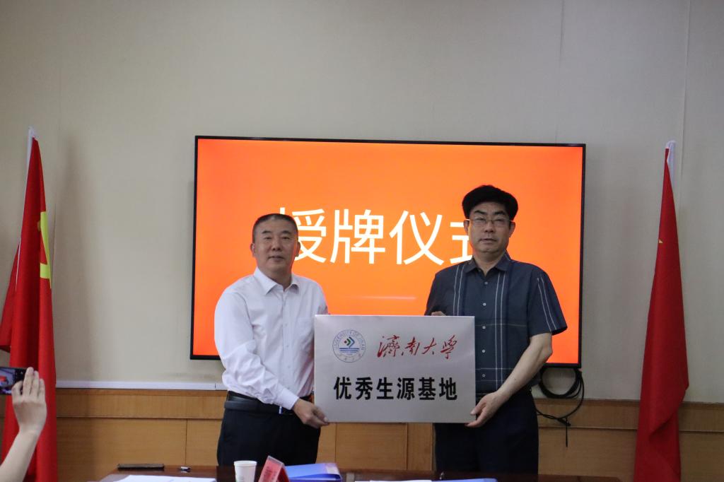 会上,济南大学与新泰市第一中学签订了实践教学基地、就业实习基地,与新泰中学签订了优秀生源地、数学学科、思政学科共建合作协议,并举行了授牌仪式。