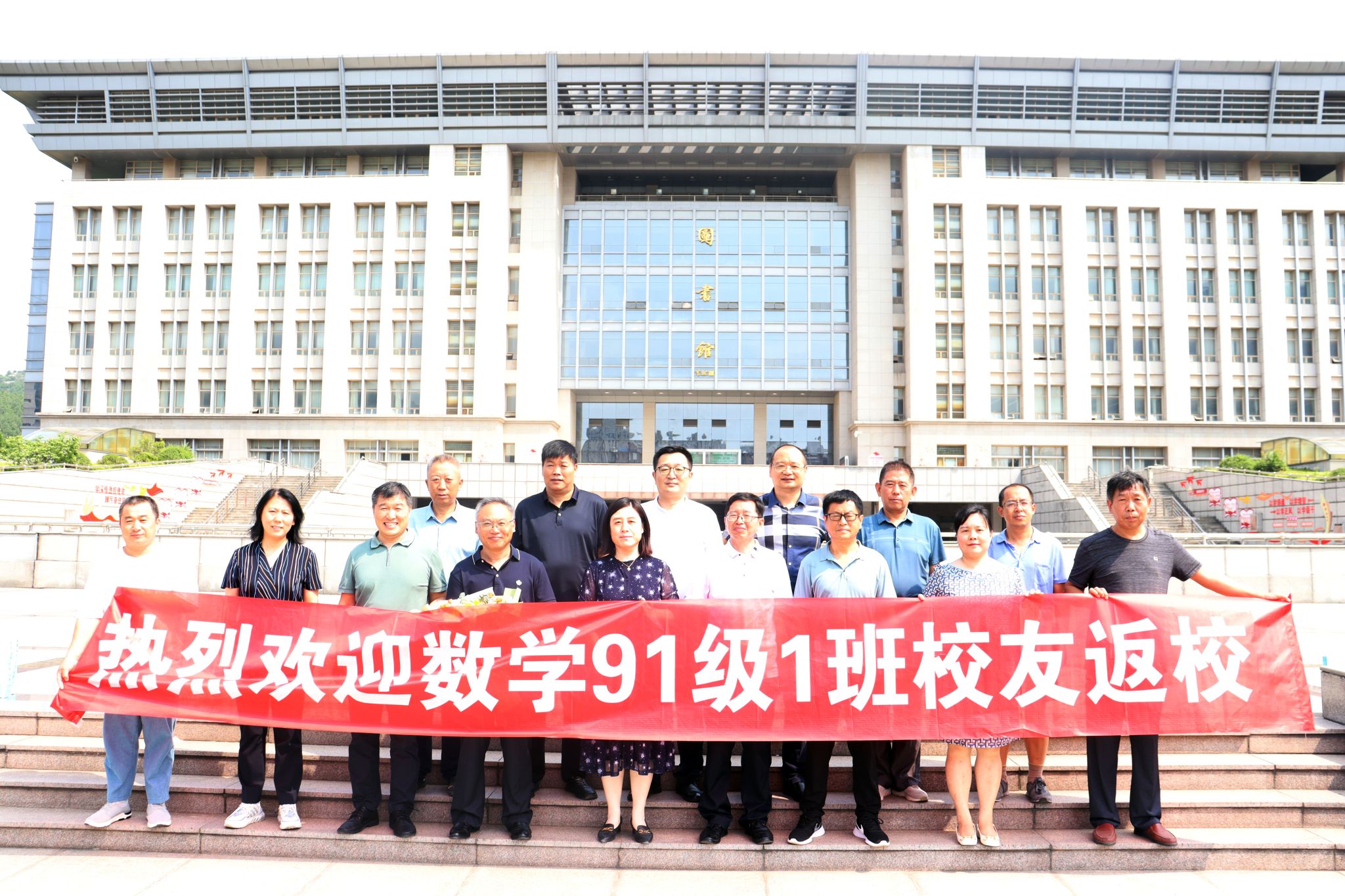 座谈会后,校友们在图书馆前合影留念并参观了校园。
