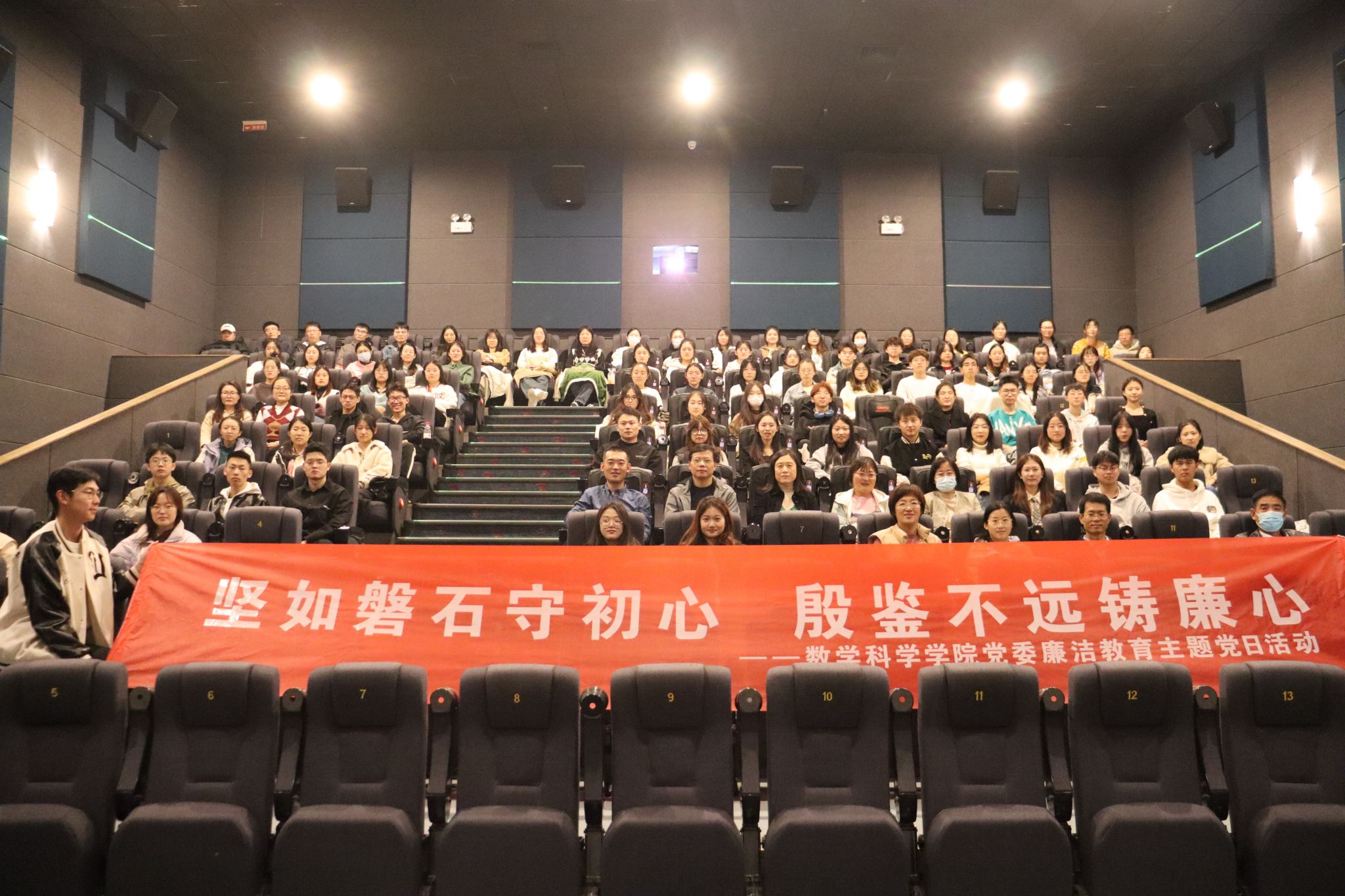 教工党员、学生党员、党员发展对象、以及入党积极分子共100余人开展“坚如磐石守初心,殷鉴不远铸廉心”廉洁教育主题党日活动,共同观看反腐题材电影《坚如磐石》。