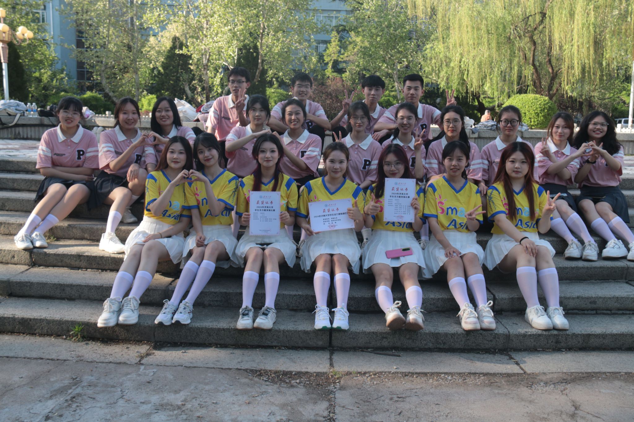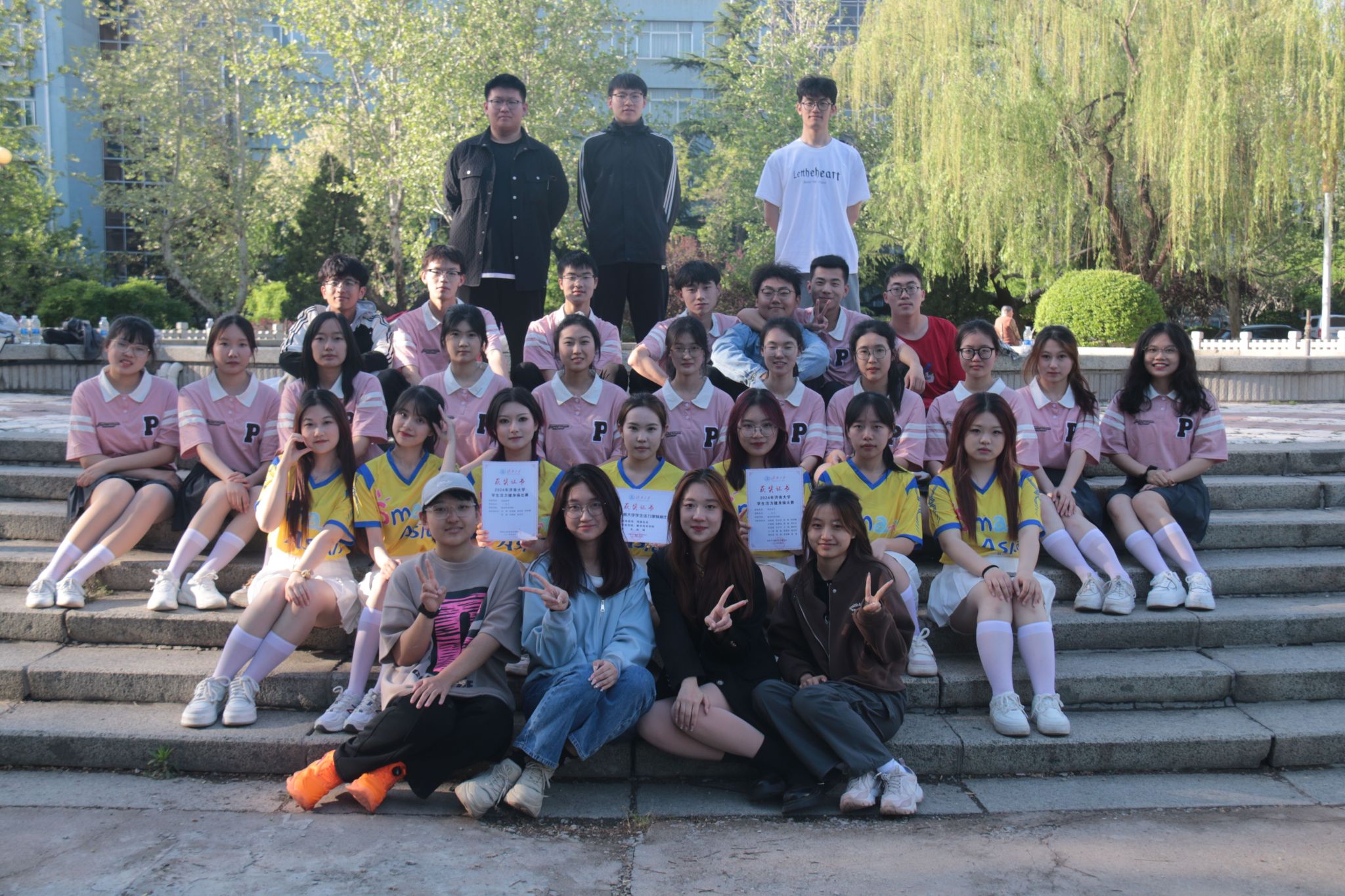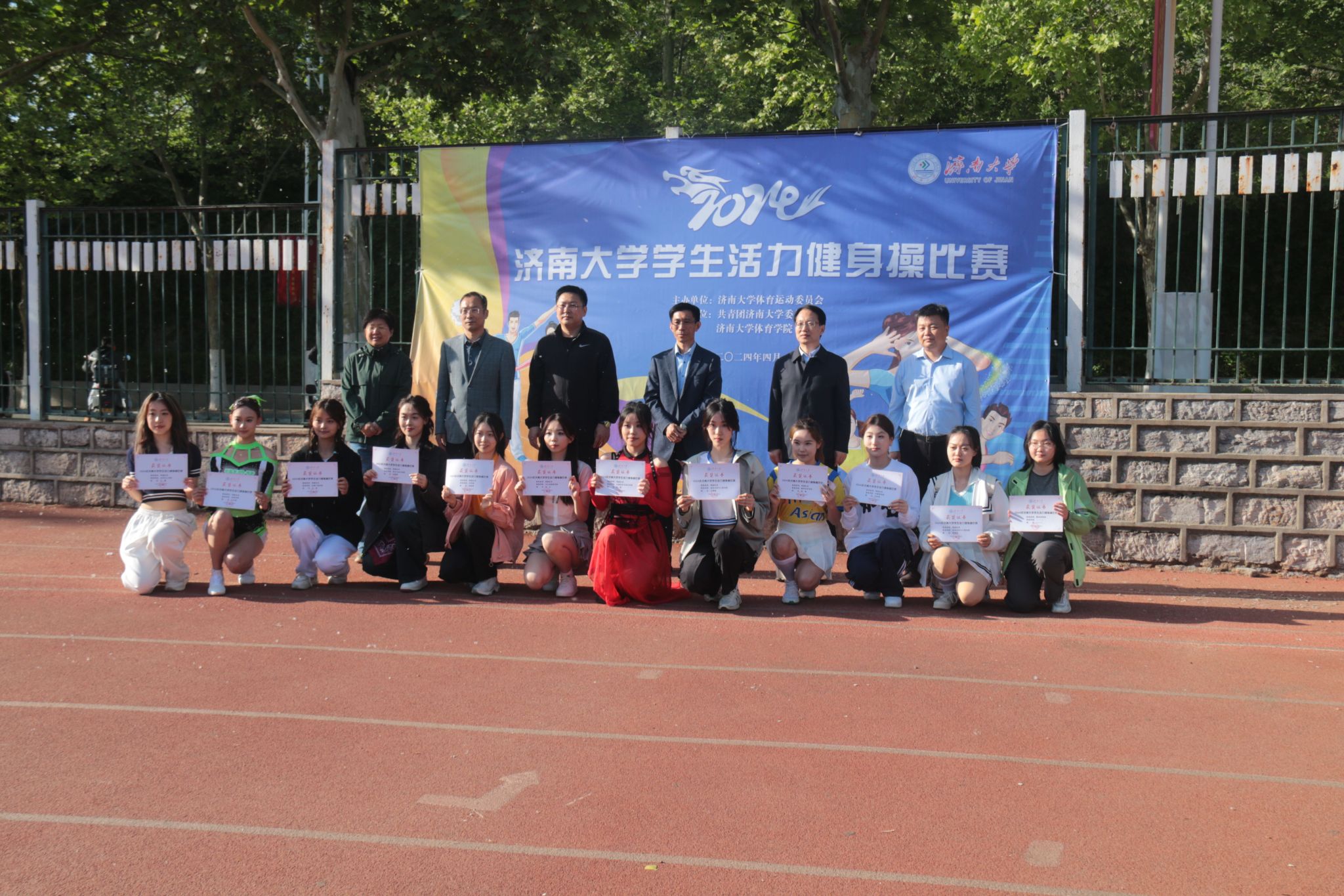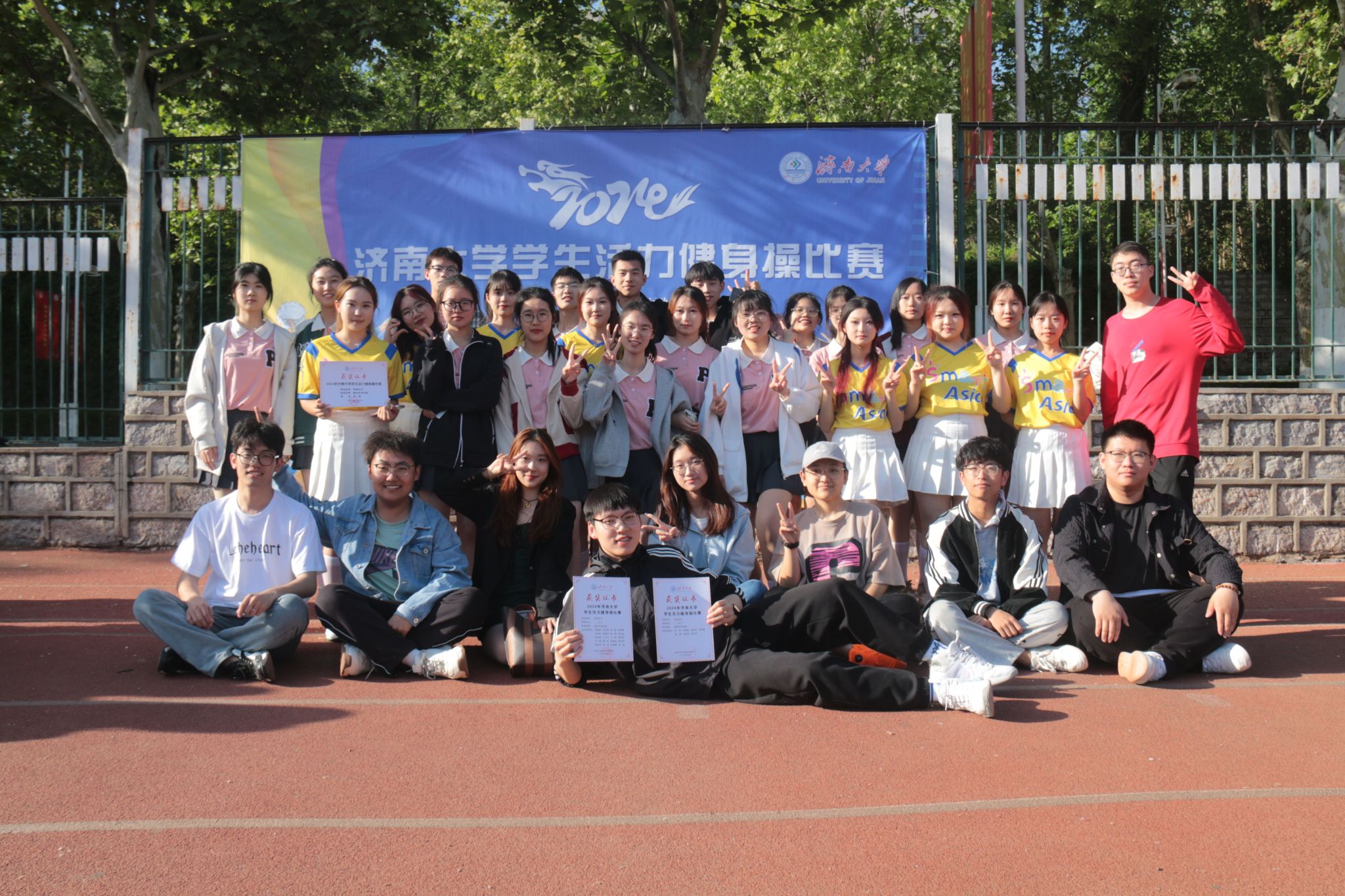健身操代表队参加了2024年济南大学学生活力健身操比赛,他们凭借出色的编排和卓越的表现荣获团体操规定动作二等奖和自选动作二等奖。