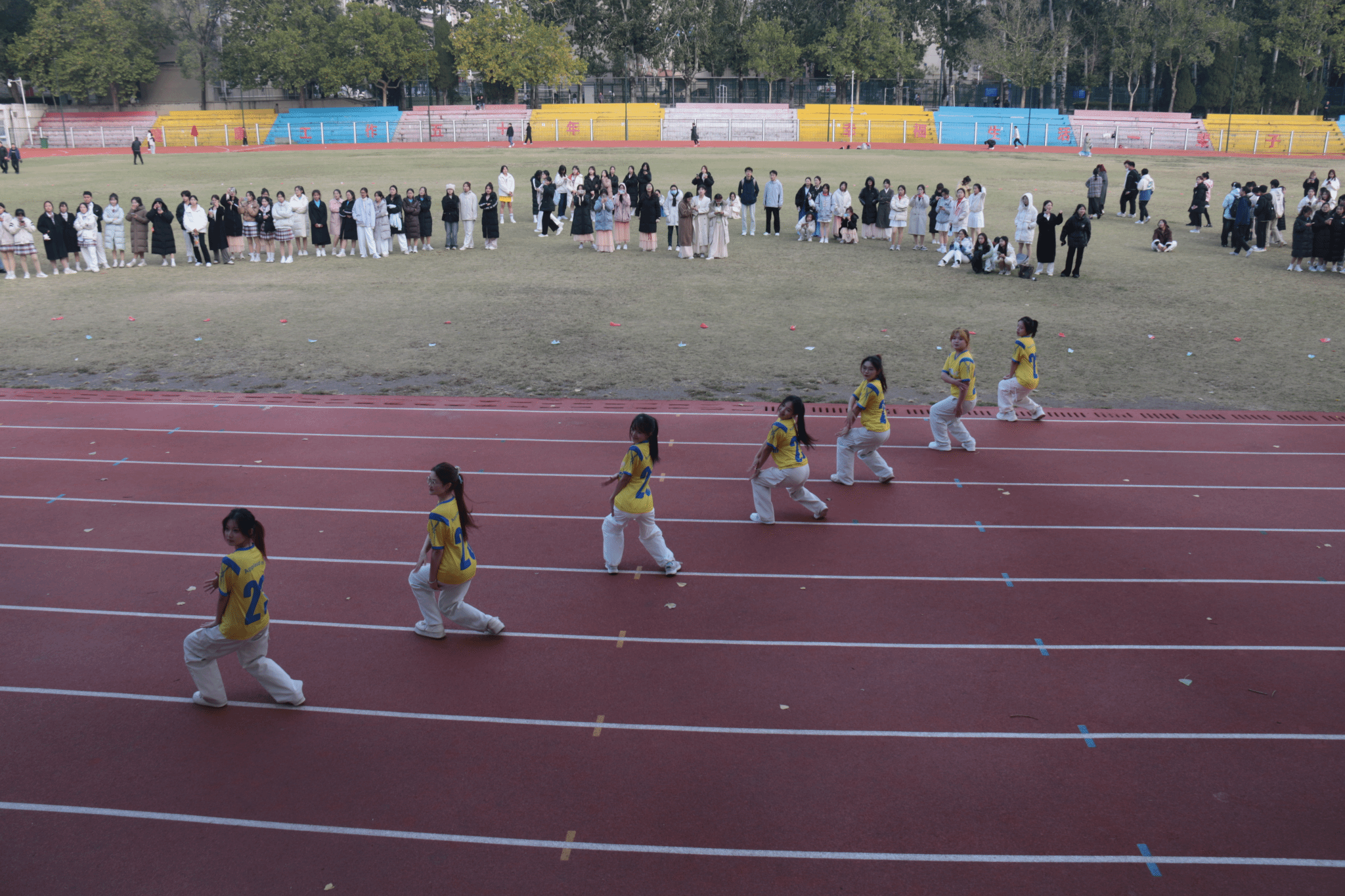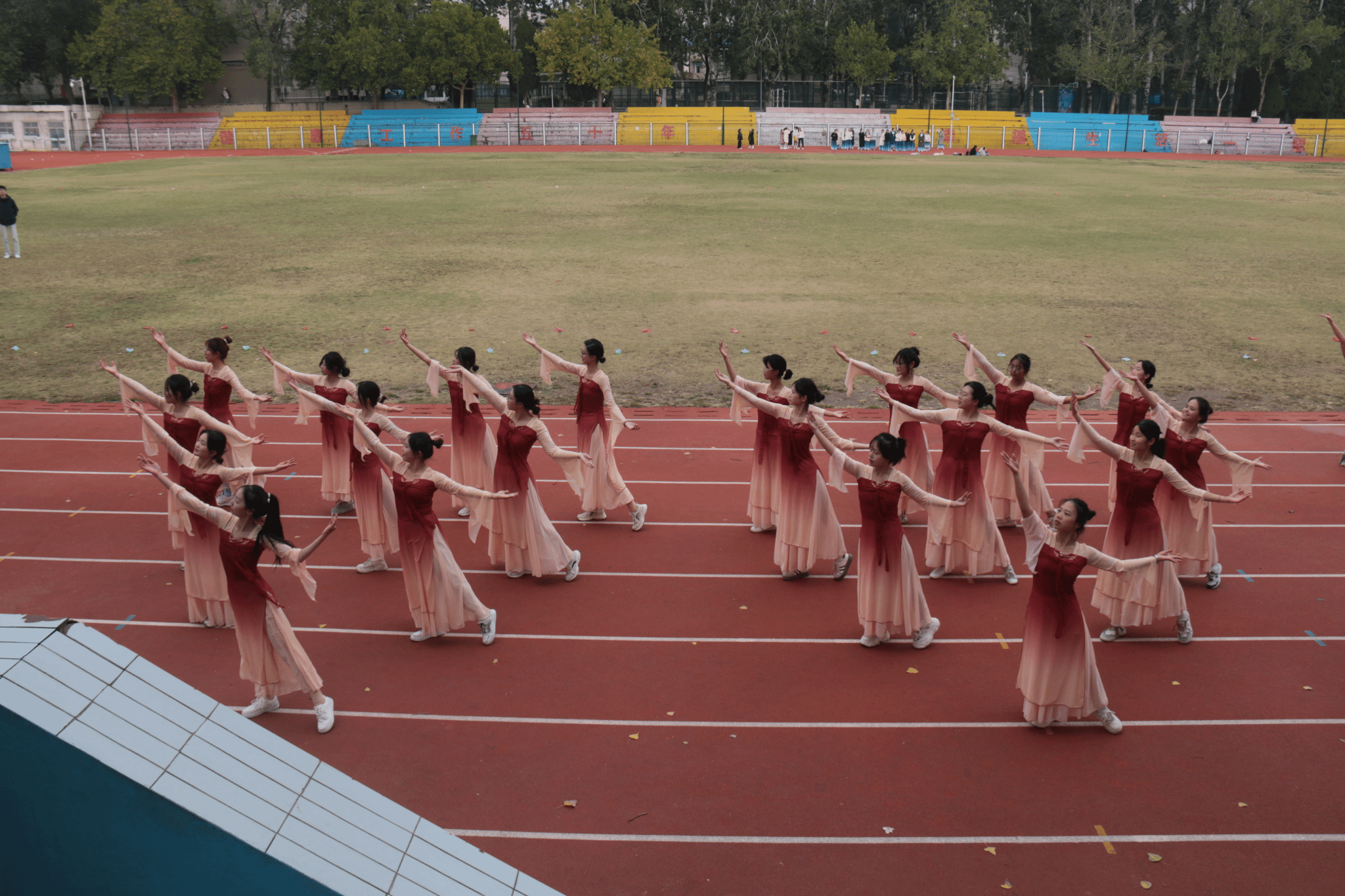 排舞规定动作队伍身着统一的服装,踏着整齐的步伐步入赛场。她们表演了《灯火里的中国》和《我和2035有个约》两首曲目,既展现了排舞舞蹈的力量之美,又融入了艺术的柔美与灵动。站在操场上的那一刻,她们每一个人都全身心地投入到表演中,每一个动作都力求精准到位,每一个眼神都充满了力量与自信。