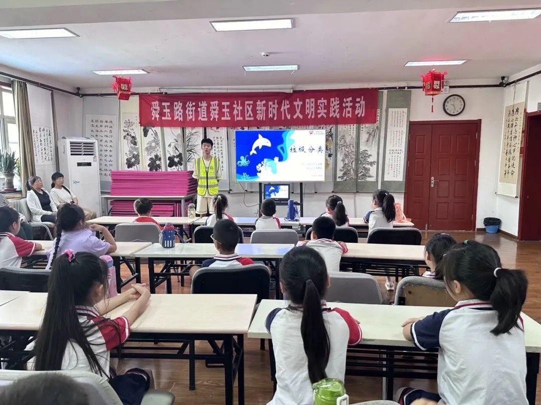 青年志愿者协会与于7月6日联合数科2302团支部在舜玉社区开展垃圾分类主题活动,为舜玉小学的同学们讲解了有关垃圾分类的知识。
