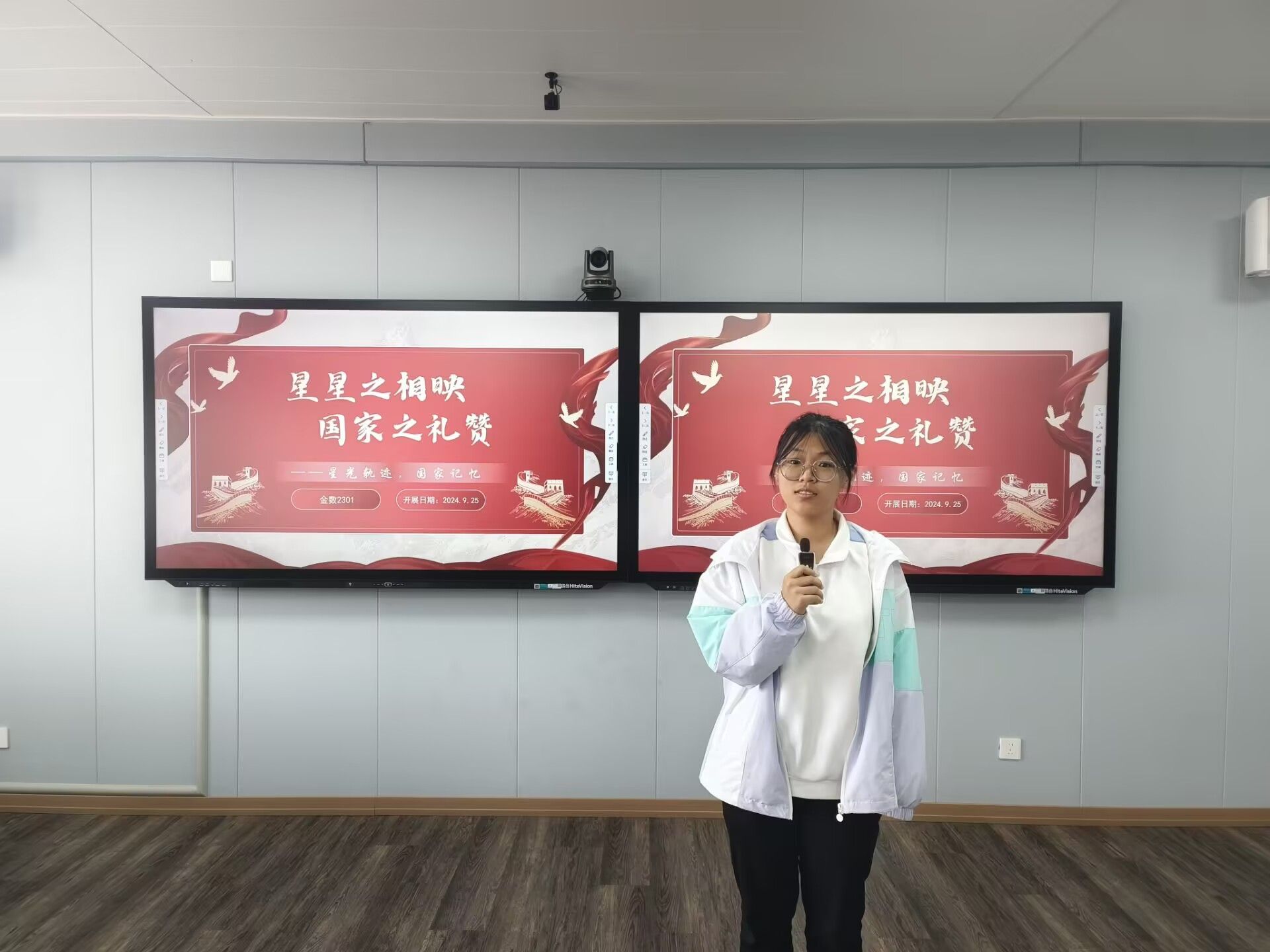 为热烈庆祝中华民族共和国成立75周年,深入学习贯彻习近平新时代中国特色社会主义思想,弘扬爱国主义精神,激发同学们的爱国热情,增强民族自豪感和使命感,2024年9月28日上午,金数2301团支部在解放阁和10J517教室开展“七十五载辉煌路,同心共筑中国梦——庆祝中华人民共和国成立75周年”主题团日活动。活动由金数2301团支部书记宋阳主持。