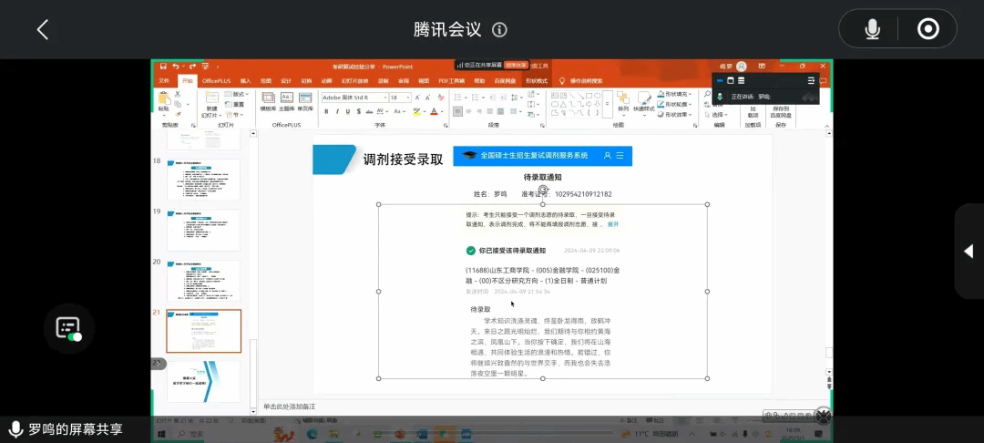 活动伊始,主持人于凤仪介绍本次分享会的目的和重要意义。随后,王勇方以辽宁大学为例,强调仔细阅读报考学校官网要求的重要性。孟洋则从面试技巧、导师选择等方面,向同学们介绍常见问题及应对策略。徐熠着重讲解简历撰写以及自我介绍准备的实用技巧,帮助同学们在复试中展现最佳状态。在调剂经验分享环节,张馨月、罗鸣、何燕结合自身经历,分别从个人情况简介、国家线分析、复试线公布以及调剂系统开放前的准备等方面进行详细分享,为同学们答疑解惑。他们从前期准备、复试及调剂流程、应试技巧等多个角度进行全面讲解,为同学们提供宝贵的复试经验和调剂建议。