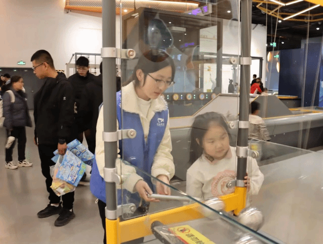 活动当日,志愿者们提前到达科技馆,在工作人员的悉心指导下,深入了解各个展区的特色展品与科学知识脉络,力求以最专业的姿态迎接参观者。服务期间,志愿者们面带微笑,礼貌地为参观者指引方向。在互动体验区,志愿者们协助参观者操作展品,引导他们在实践中感受科技的魅力。面对小朋友们好奇的提问,他们耐心解答,用通俗易懂的语言解释科学原理,激发孩子们对科学的兴趣。