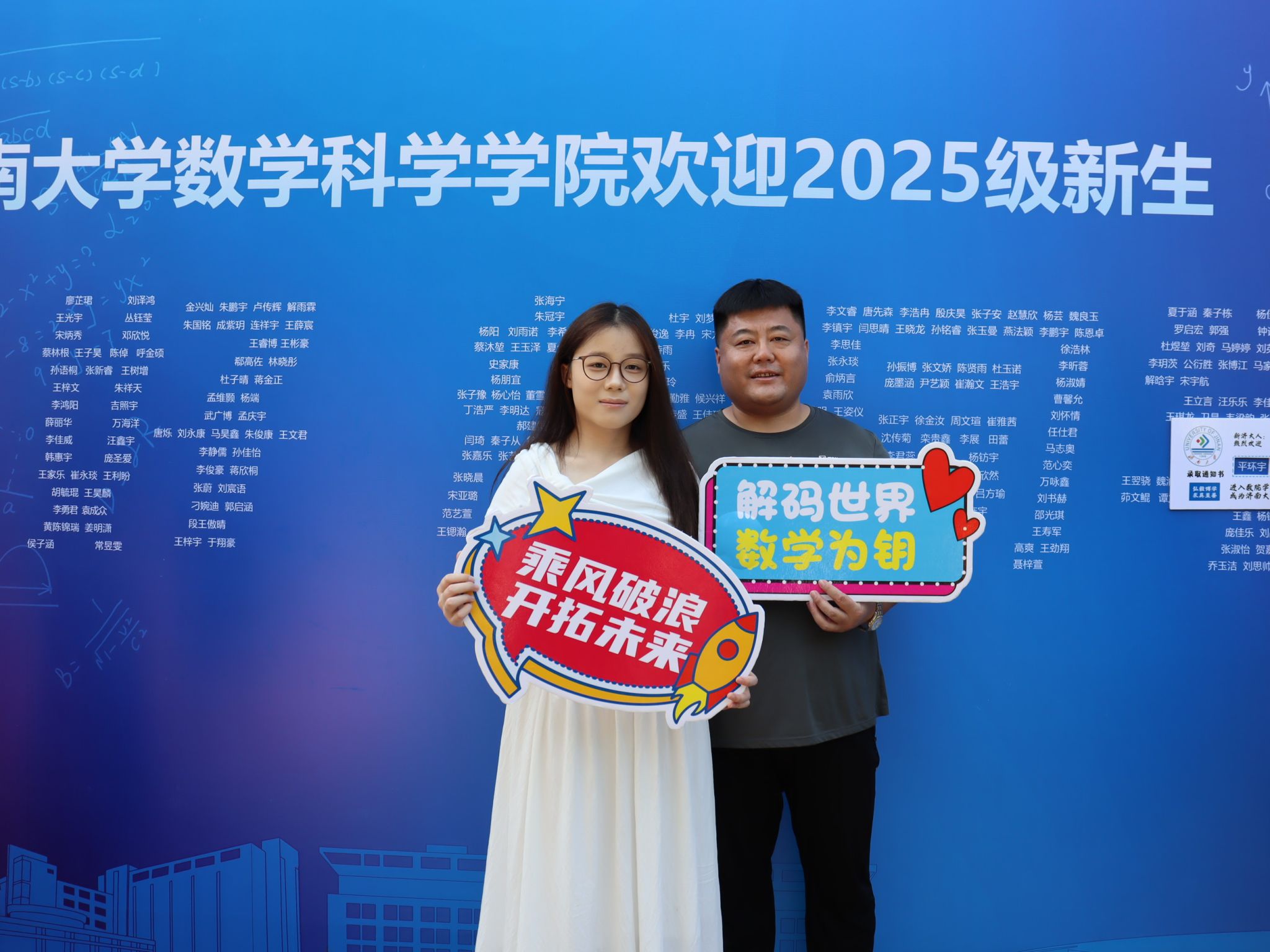 特别融入数学文化特色元素。在报到入口处,以数学公式、数学家名言设计的文化展板吸引众多新生驻足,在了解数学历史、感悟数学魅力的同时,激发新生对专业学习的热情。在互动区,专属姓名墙与创意标签别出心裁,留下初入校园的专属印记,并与姓名墙合影,定格与澳门赌场
