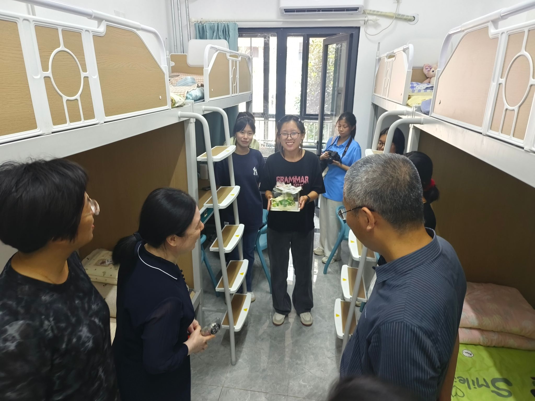 党委副书记、副院长张沂红及新生班主任,辅导员等亲临现场,与新生及家长亲切交谈,答疑解惑。在新生宿舍,领导和老师们仔细查看居住环境,关心新生生活需求。大一新生常明佳在开学首日迎来了自己的生日,澳门赌场