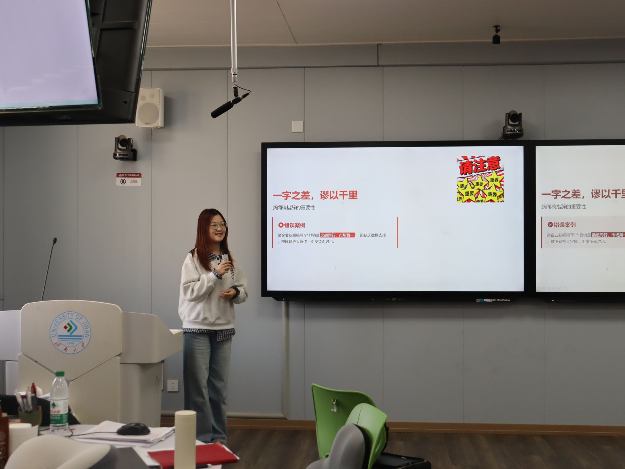 随后,李梦飞结合自身实战经验,开展新闻摄影摄像专题指导,从设备使用、场景拍摄技巧到素材后期处理,全方位分享宣传影像采集的实用方法。李雨晴聚焦新闻稿措辞规范,通过案例分析的方式,详细讲解常见措辞谬误及修正技巧,帮助成员提升文字表达的准确性与专业性。