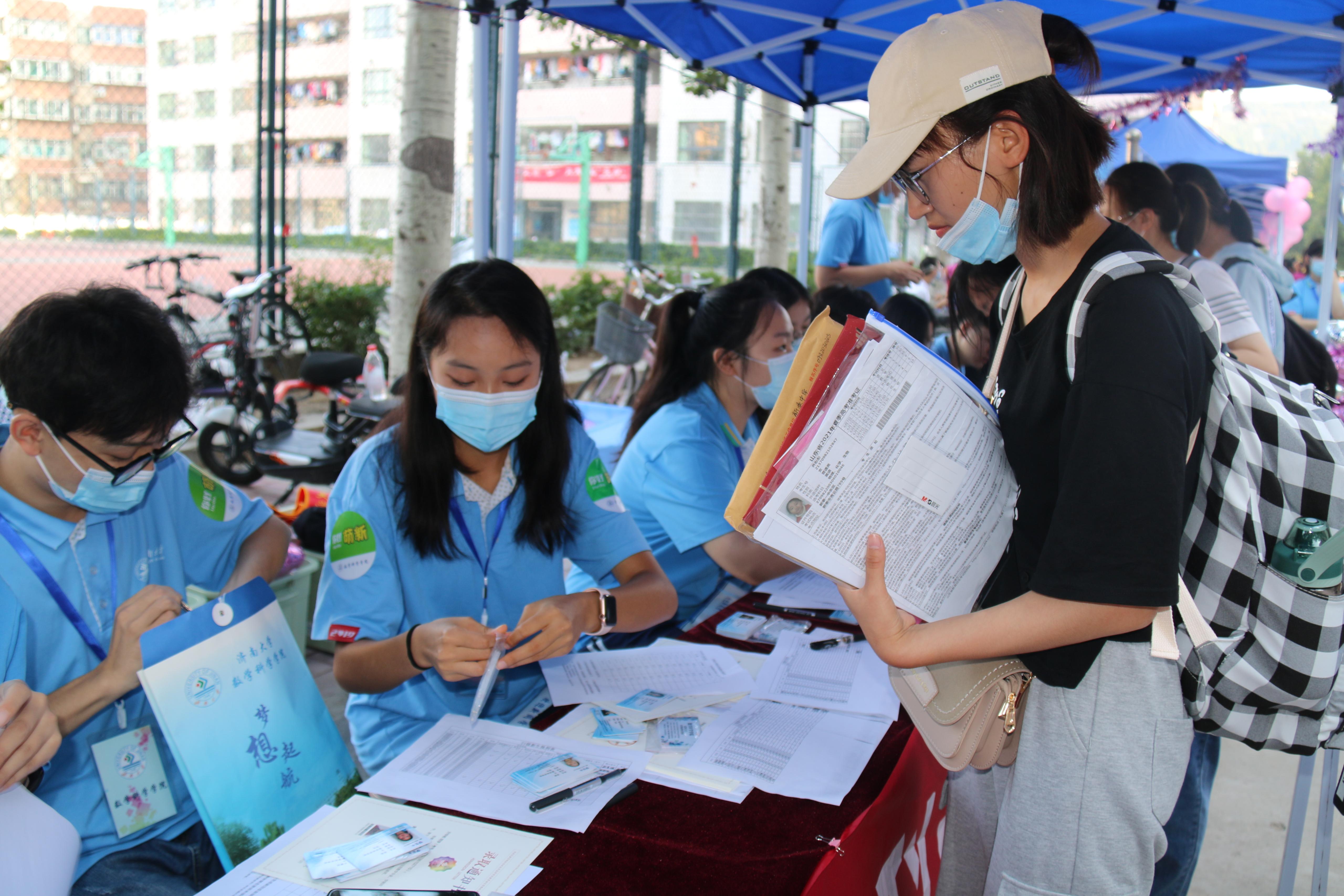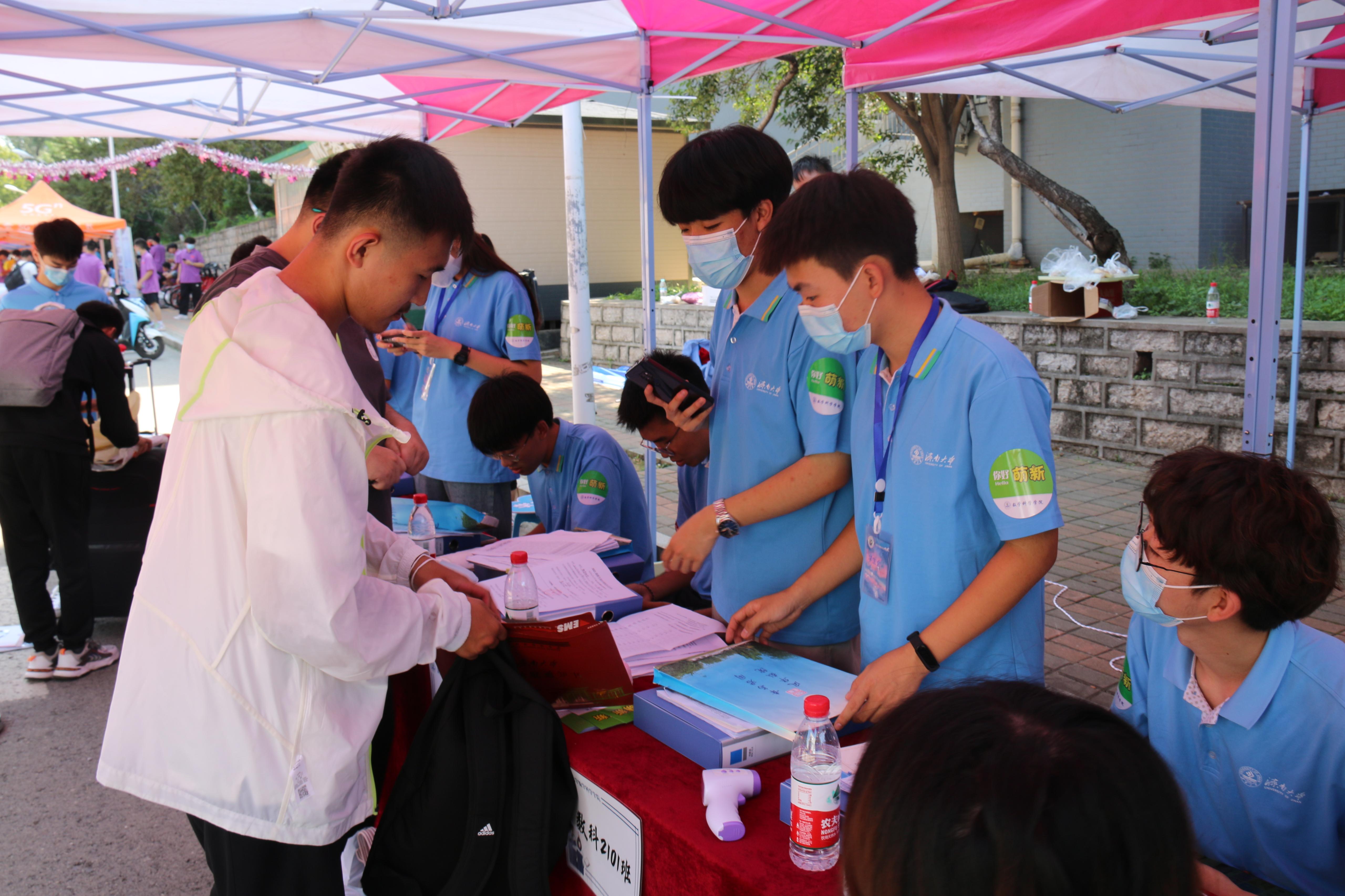 报到点完成报到手续。报到过程井然有序,迎新工作如火如荼。展板、横幅把迎新点装扮一新,新生通过查验录取信息、材料收取、信息采集等步骤完成现场报到,领取专属于数院人的入学文件袋与钥匙扣,正式成为数院的一员。