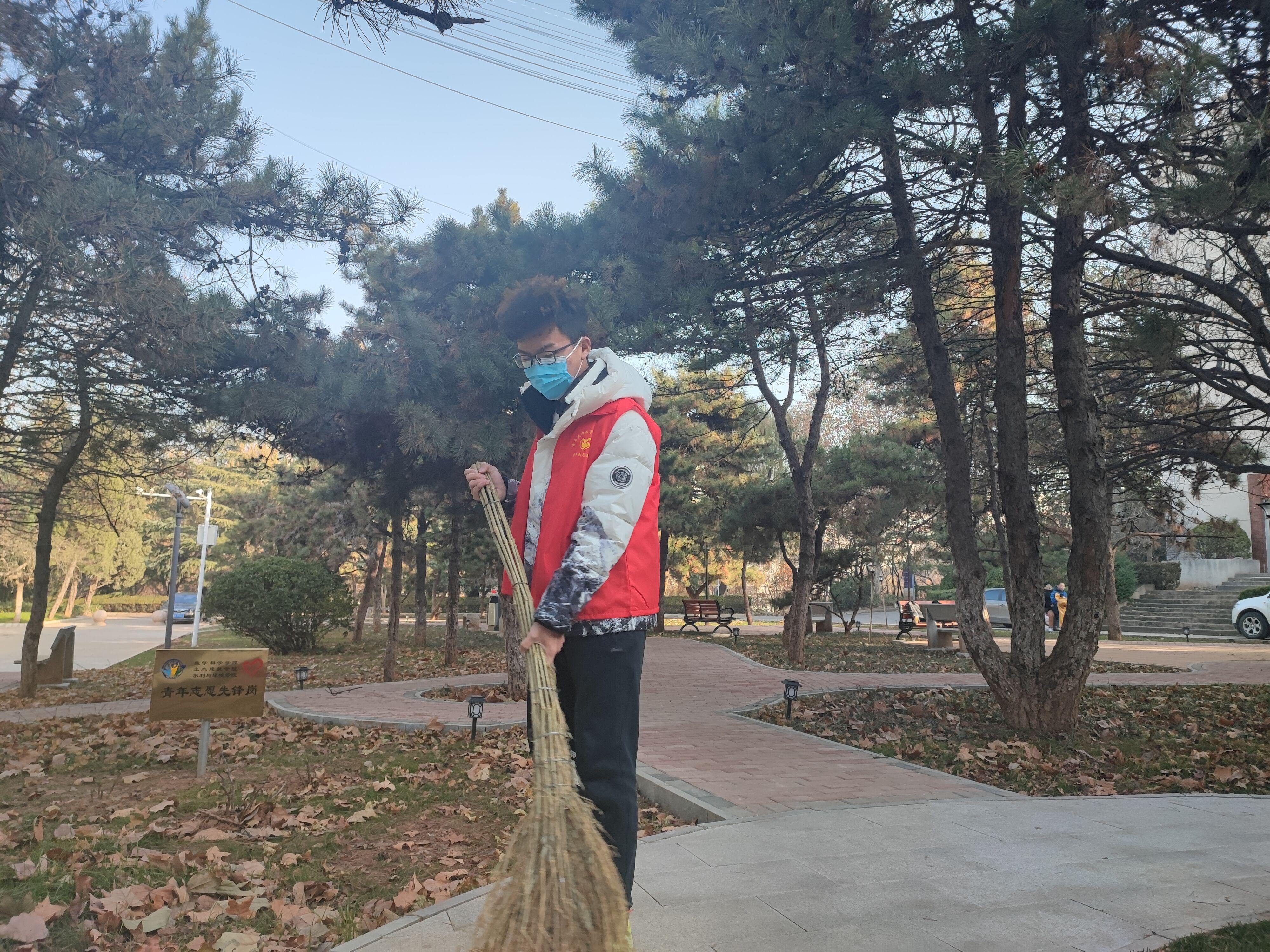 每次进行护林行动前,志愿者们都会提前准备好多种打扫工具,根据任务安排,及时清扫颂园树林中的枯枝落叶等易燃物品,并将清理出的易燃物品聚集整理成堆,存放到袋子里,等待环卫工人的收取。同时志愿者们也清理了树林中的垃圾,维持了林间环境的干净、卫生。志愿者们不怕苦、不怕累、不怕脏,在冷风中坚持劳动,积极发扬奉献精神,分工合作,以劳动为荣。经过多组的志愿者高效、仔细的清扫,原本脏乱的地面焕然一新,原本遍布地面的枯枝落叶都被堆在林间空地上,树林中石板路在志愿者们的清理后显现出来。