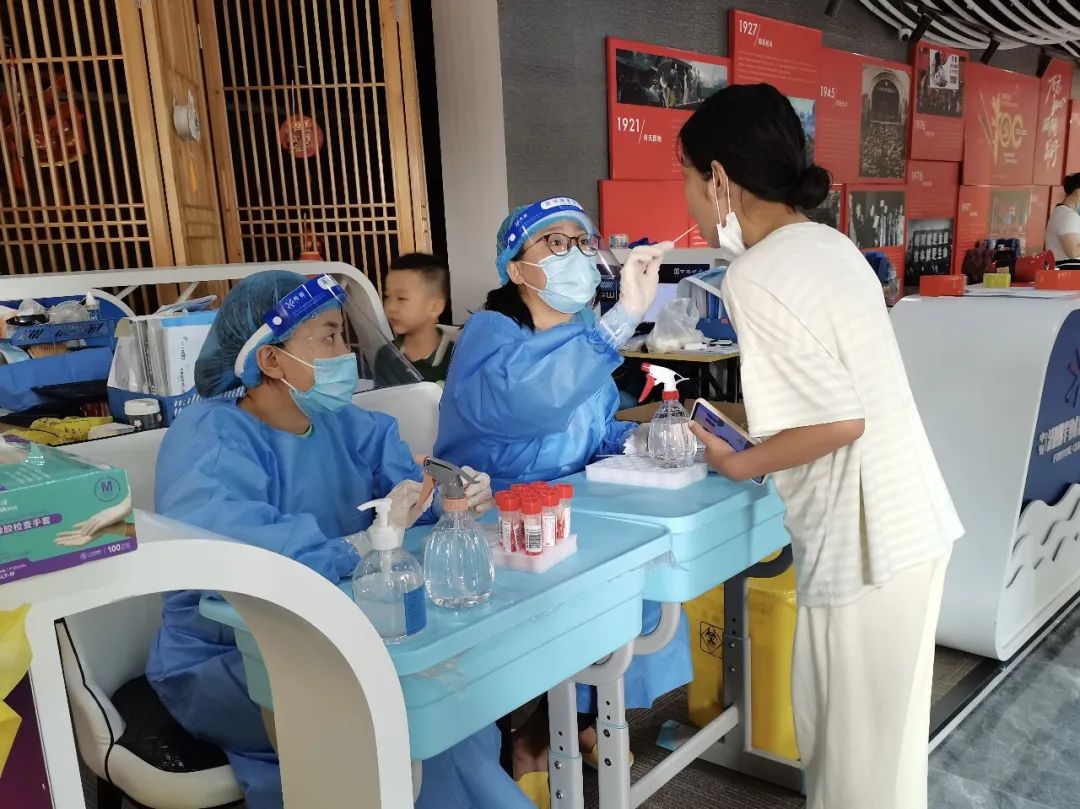 活动期间,同学们前往当地社区医院进行社会调研,化身志愿者参与到防疫工作中,并以图片的形式记录防疫过程中的温暖瞬间。在同学们上传的实践照片中,参与志愿活动的同学身穿防护服,为进行核酸检测的市民登记信息,还有许多青年志愿者主动维持现场秩序,他们有的引导群众按序排队,有的耐心回答市民们的问题,坚守岗位、积极奉献的他们构成了这个夏天一道靓丽的“风景线”。通过这一张张来自全国各地的照片,我们看到了充满担当、无私奉献的青年志愿者们,更看到了由奉献而更加出彩的青春。