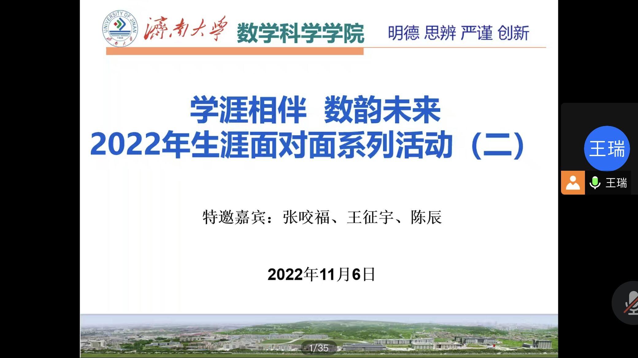 于11月6日晚七点举办线上学业规划讲座。张咬福、王征宇、陈辰三位济南大学优秀毕业生受邀,为同学们进行学业规划讲座,全体2022级新生参加活动。