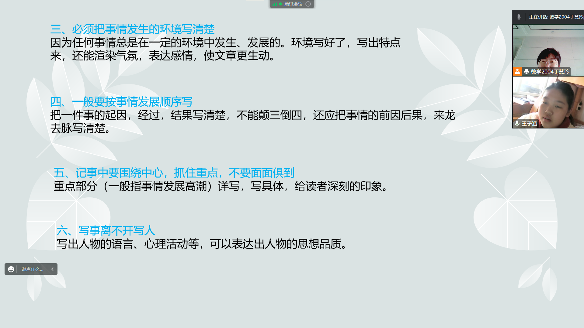 在这次实践活动中,我认真备课,不断打磨课程思路,细心制作所需的课件,并为小朋友量身安排了课程。第一节课,我带领小朋友对语文常考题型进行了详细总结,并逐一讲解,通过一些相关例子加深小朋友对知识点的理解。在这节课中,我觉察到小朋友的基础很不错,而且在课上积极认真、注意力集中。但小朋友有点内向,与我互动较少。课后我进行了反思:我没能完全接收小朋友的听课需求,语言交流相对过少。