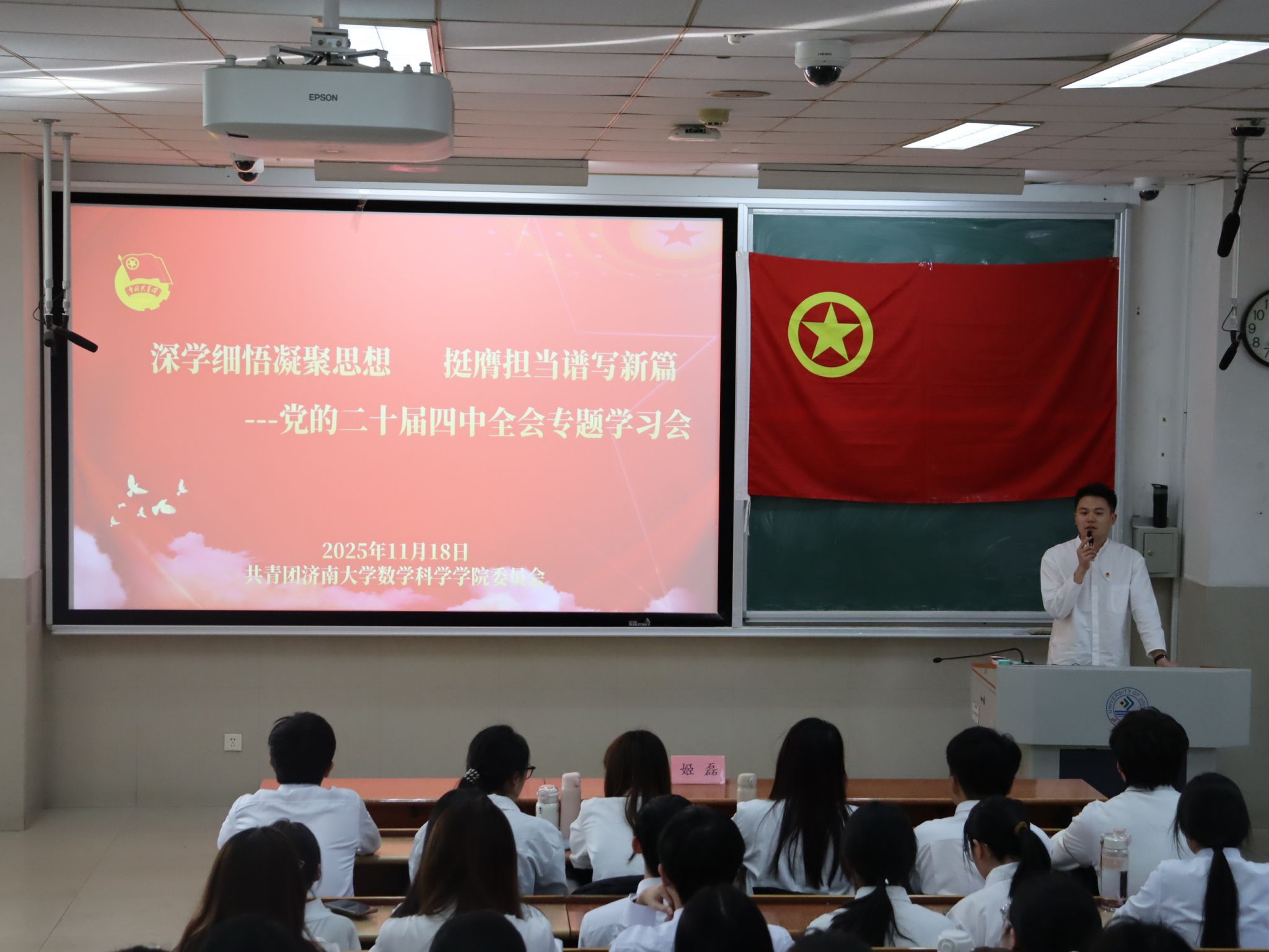 团委书记姬磊以“奋进‘十五五’ 青春挺膺担当”为主题解读全会精神,系统解读全会提出的“科技自立自强”“高质量发展”等重大部署与青年使命的内在关联;依托“青年大学习”网上主题团课、推送专题学习图文、短视频,覆盖青年学子1000余人次;计划组建由团委书记、学生党员骨干、优秀团员组成的“青春宣讲团”,下沉各团支部开展靶向宣讲,实现理论学习从“灌输式”向“互动式”转变;精心策划红色主题教育系列活动,组织新发展团员、“青马工程”学员等赴济南战役纪念馆、英雄山开展沉浸式学习,让红色基因与全会精神深度融合。